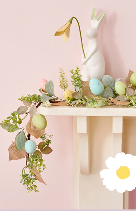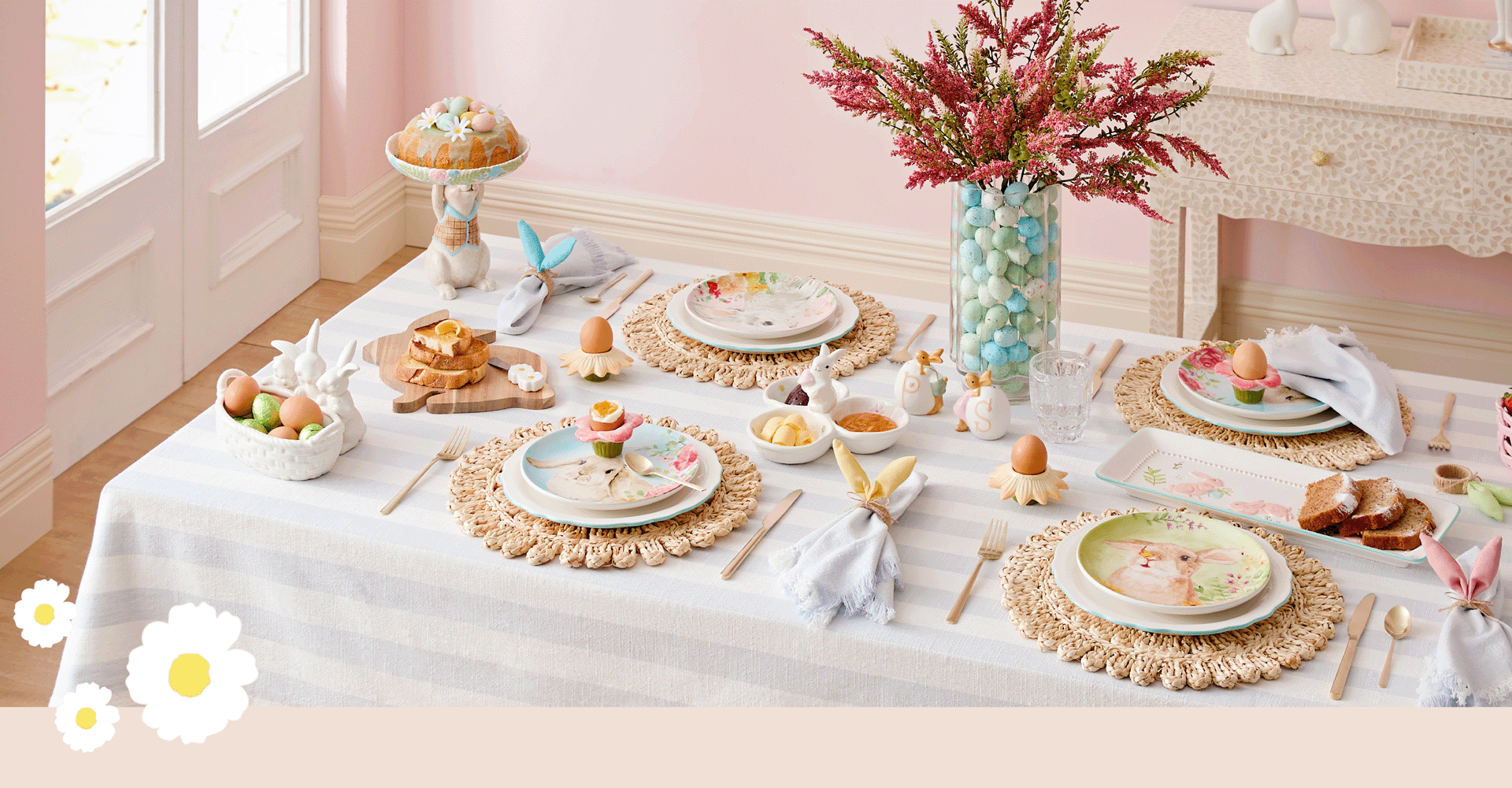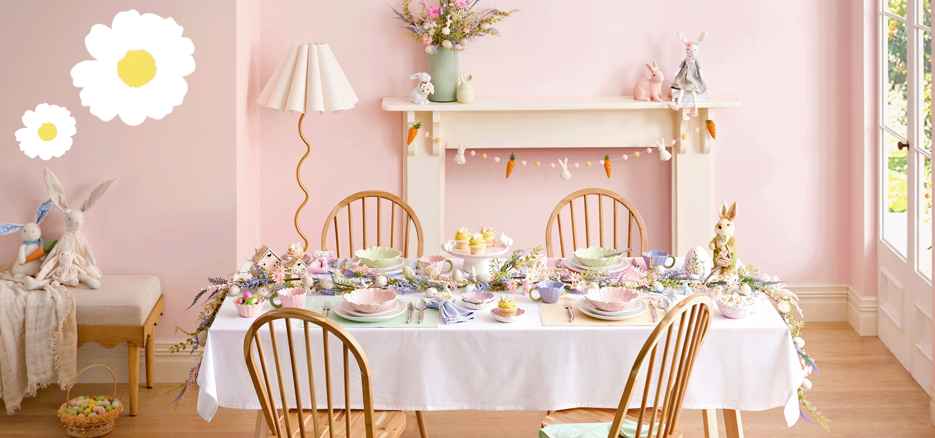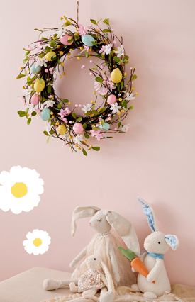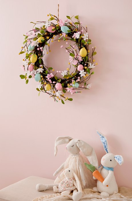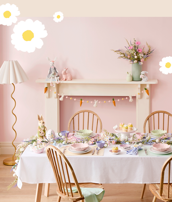Make your home a pastel paradise with playful bunnies, scattered eggs, and soft patterned details.