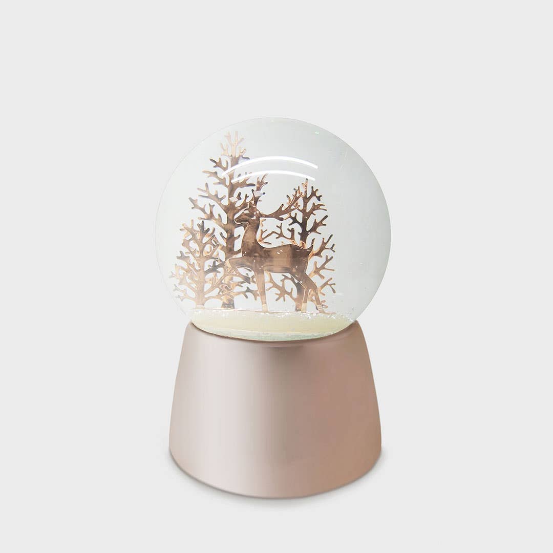 Musical Snow Dome with Forest Reindeer: Length 10cm Width 10cm Height 14.5cm, Porcelain/Metal/Water, 18507001