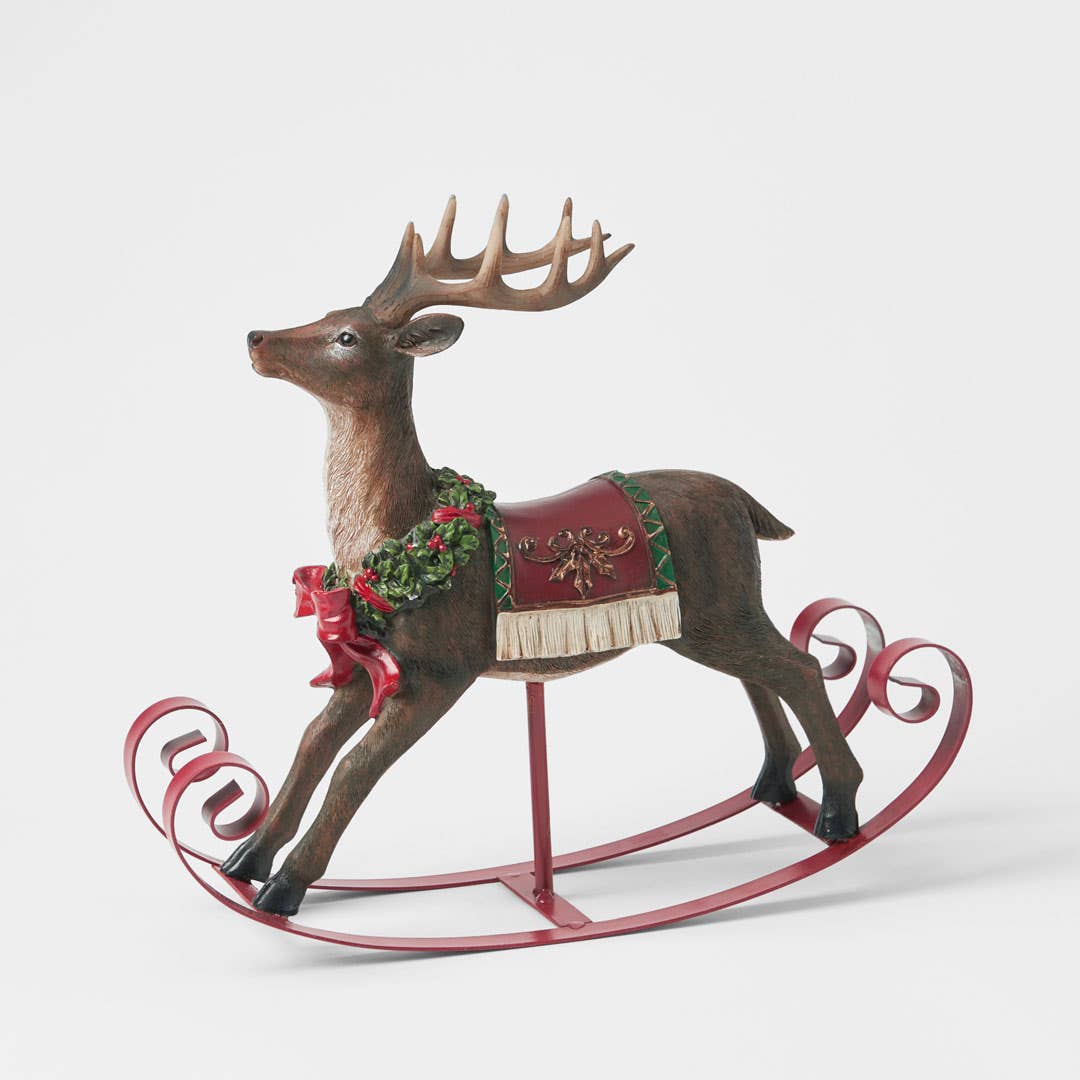 Polyresin Rocking Reindeer: Length 36.5cm Width 10.2cm Height 31cm, Polyresin, 18543701