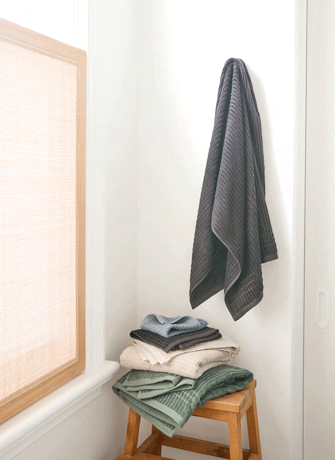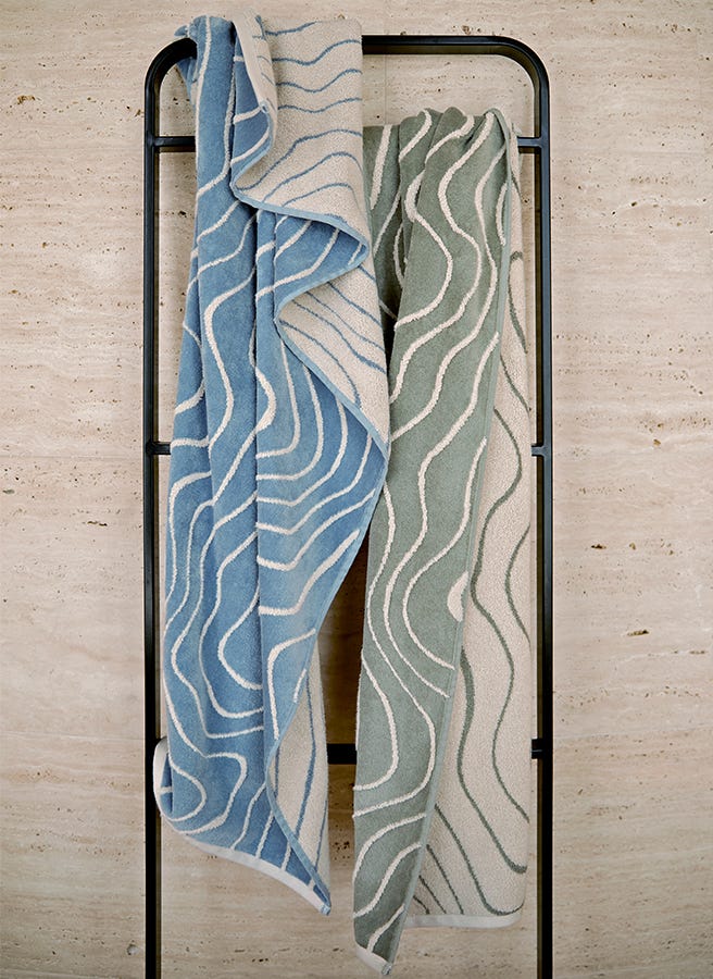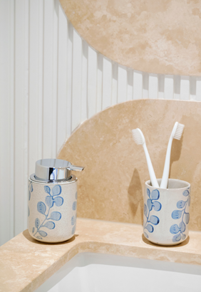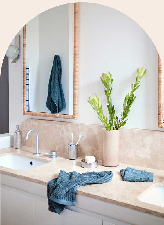 Take some time to unwind with calming additions to your bathroom, inspired by ocean hues. Indulge in the luxury of soft textures and beautiful woven details.