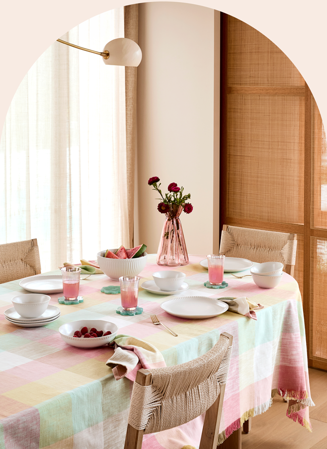 Style a table that feels refreshingly joyful. Soft pastels and delicate details strike a balance between playful and elegant.