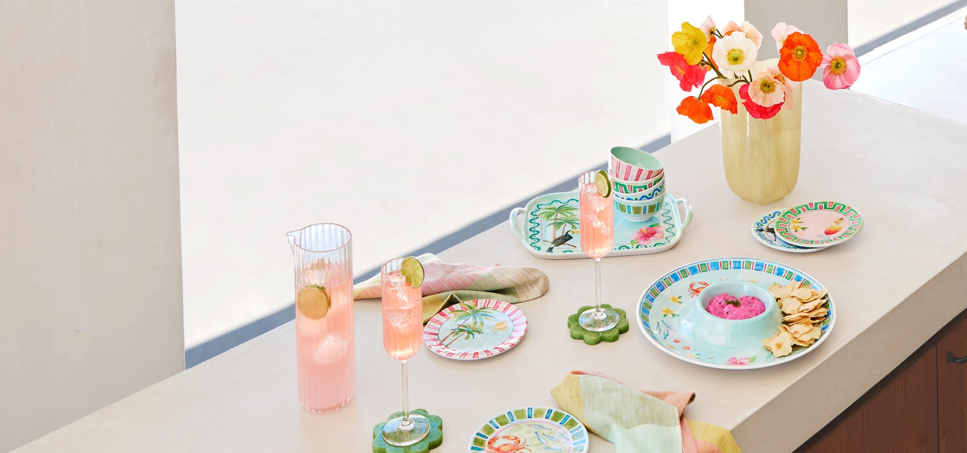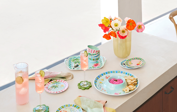 A pop of colour and playful summer motifs embrace the energy of the season. Have fun with your styling for a celebratory touch.
