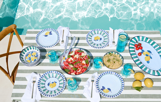 Set the scene with a touch of the Mediterranean. Lively motifs and clean stripes bring a burst of energy and colour to your setting.