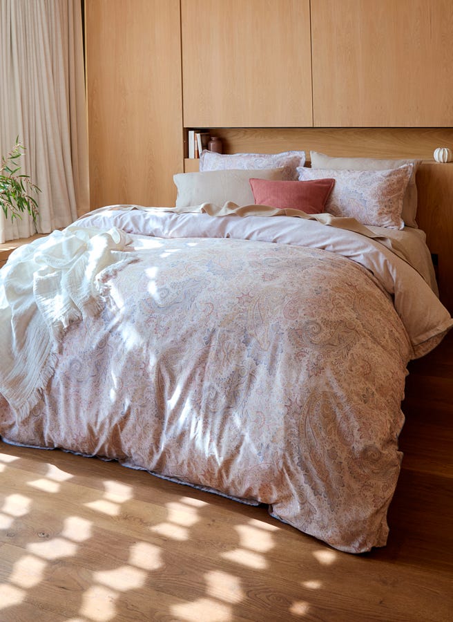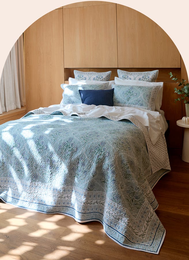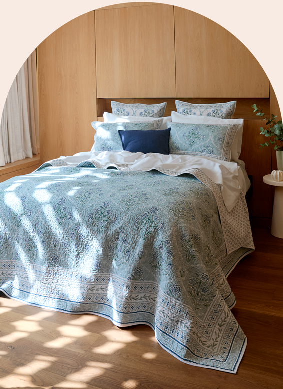 Delicate patterns and lustrous textures exude classic elegance. Soft, inviting additions bring your sanctuary to life.